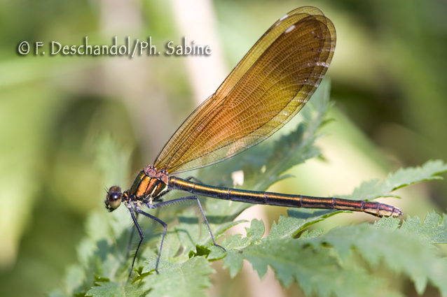 : Caloptéryx vierge (Calopteryx virgo), femelle, Corneville sur Risle (27), France.