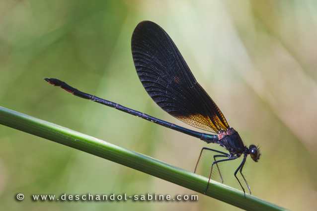 : Caloptéryx hémorroïdal (Calopteryx haemorrhoidalis), mâle, Sierra de Cazorla, Espagne.