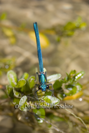 : Caloptéryx Ouest Méditerranéen (Calopteryx xanthostoma), mâle, Vallée d'Anso, Pyrénées, Espagne.