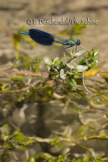 : Caloptéryx Ouest Méditerranéen (Calopteryx xanthostoma), mâle, Vallée d'Anso, Pyrénées, Espagne.