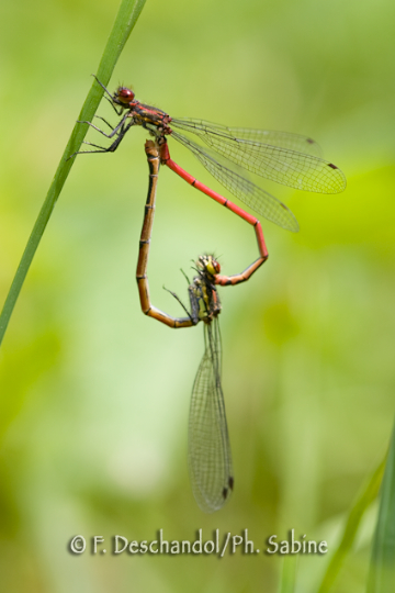 : Petites nymphes au corps de feu (Pyrrhosoma nymphula), accouplement, Beslé (44), France.