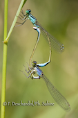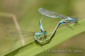 Agrions élégants (Ischnura elegans), accouplement, Bouveran (25), France.