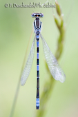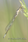 Leste verdoyant (Lestes virens), mâle, Embalse de Navalcan, Espagne.
