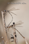 Lestes verdoyants (Lestes virens), accouplement, Embalse de Navalcan, Espagne.
