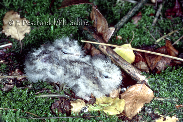 : Engoulevent d'Europe (Caprimulgus europaeus), poussins, Forêt de Brotonne (76), France.