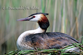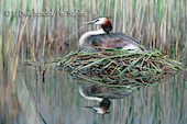 Grèbe huppé (Podiceps cristatus), au nid, Baie de Seine (76), France.