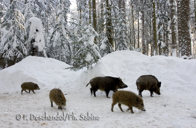 : Sangliers (Sus crofa), Parc du Bayerischer Wald, Allemagne.