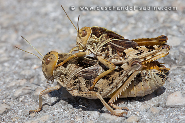 : Criquets hérissons (Prionotropis hystrix hystrix), accouplement, Krupa, Croatie.