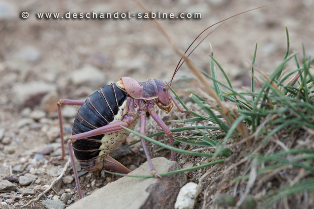 : Ephippiger des vignes (Ephippiger ephippiger), femelle pondant, Jujols (66), France.