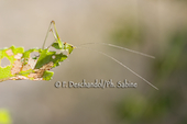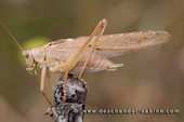 Grande sauterelle verte (Tettigonia viridissima), forme brune, Ibeas de Juarros, Espagne.