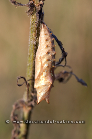 : Petite tortue (Aglais urticae), chrysalide, La Pierre St Martin (64), France.