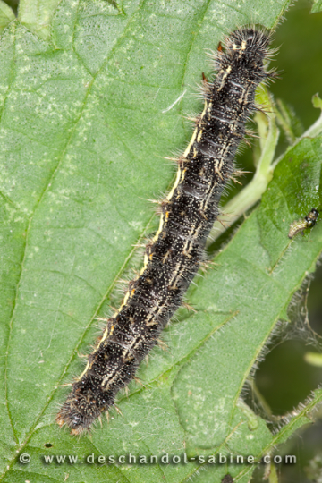 : Belle-Dame (Cynthia cardui), chenille 5ème stade, génération issue de migrateurs, St Adresse (76), France.
