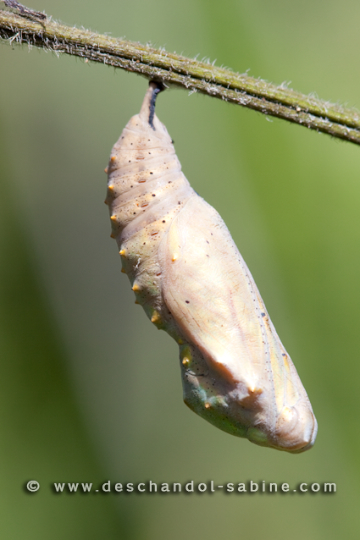 : Belle-Dame (Cynthia cardui), chrysalide, génération issue de migrateurs, Rogerville (76), France.