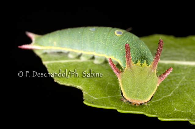: Nymphale de l'Arbousier (Charaxes jasius), chenille 4ème stade, St Raphaël (83), France.