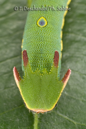 : Nymphale de l'Arbousier (Charaxes jasius), chenille 5ème stade, St Raphaël (83), France.