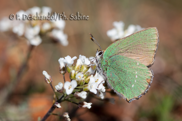 : Thécla de la Ronce (Callophrys rubi), Taravilla, Espagne.