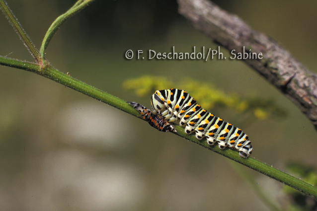 : Machaon (Papilio machaon), chenille 5ème stade après la mue, Baie de Seine (76), France.