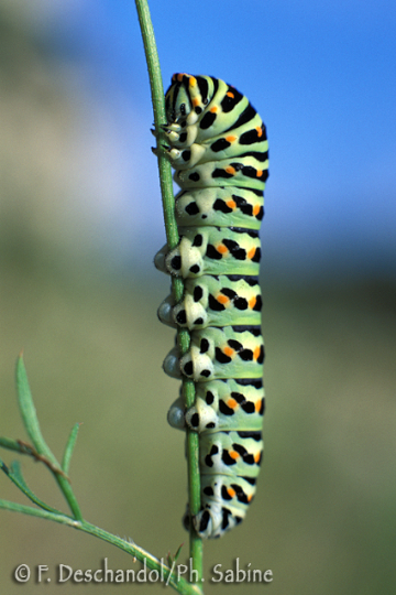 : Machaon (Papilio machaon), chenille 5ème stade, Baie de Seine (76), France.