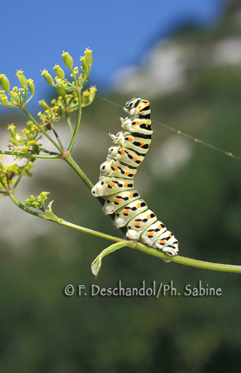 : Machaon (Papilio machaon), chenille 5ème stade, Baie de Seine (76), France.