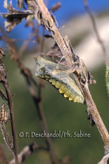 : Machaon (Papilio machaon), chrysalide, Baie de Seine (76), France.