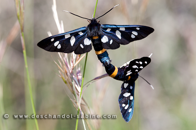: Zygènes du pissenlit (Syntomis phegea), accouplement, Udbina, Croatie.