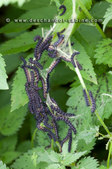 : Paons du jour (Inachis io), chenilles 4ème stade, Venables (27), France.
