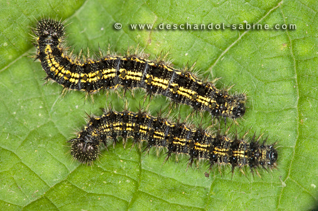 : Petite tortue (Aglais urticae), chenille 5ème stade, La Pierre St Martin (64), France.