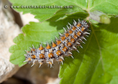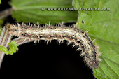 Belle-Dame (Cynthia cardui), chenille 5ème stade, génération issue de migrateurs, Rogerville (76), France.