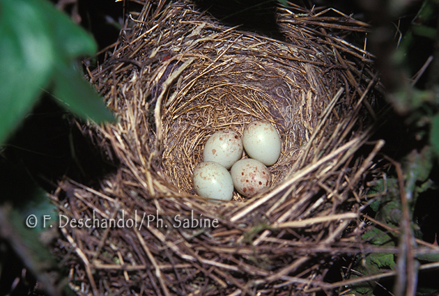 : Linotte mélodieuse (Carduelis cannabina), nid et oeufs, Baie de Seine (76), France.