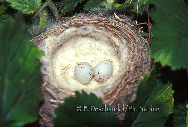 : Chardonneret (Carduelis carduelis), nid et oeufs, Baie de Seine (76), France.