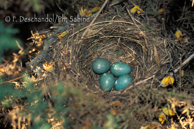 : Merle noir (Turdus merula), nid et oeufs, Falaise de Cauville (76), France.