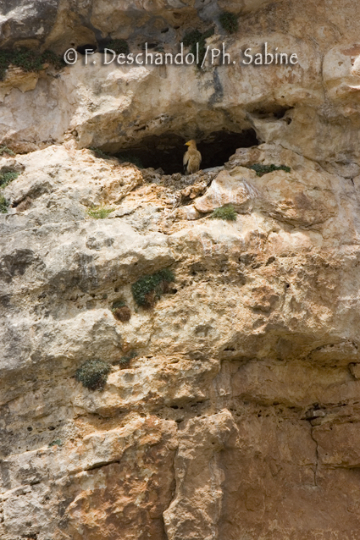: Vautour percnoptère (Neophron percnopterus), nid, Vallée d'Embid, Espagne.