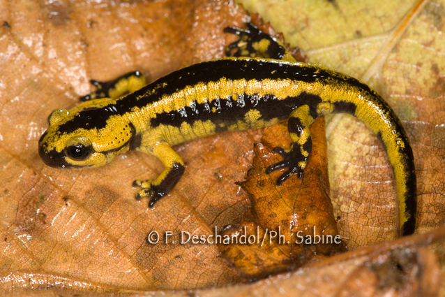 : Salamandre tachetée (Salamandra salamandra alfredschmidti), La Marea, Espagne.