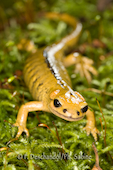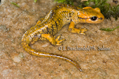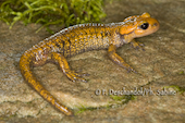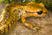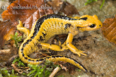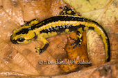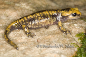 Salamandre tachetée (Salamandra salamandra alfredschmidti), juvénile, Rio Tendi, Espagne.
