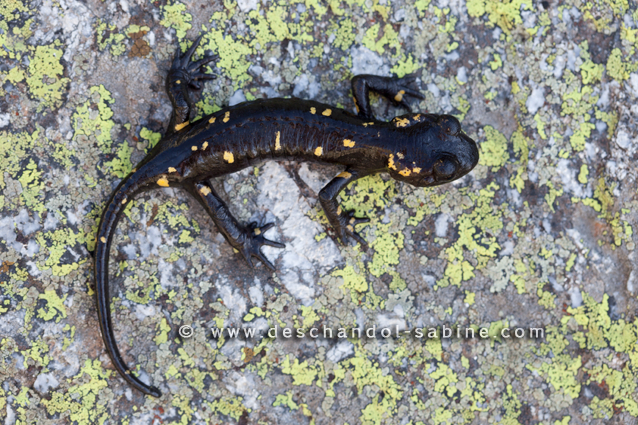 : Salamandre tachetée (Salamandra salamandra almanzoris), Sierra de Gredos, Espagne.
