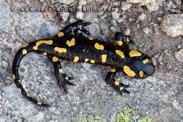 : Salamandre tachetée (Salamandra salamandra almanzoris), Sierra de Gredos, Espagne.