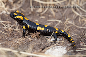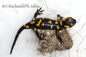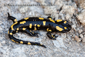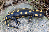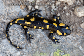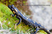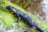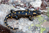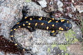 Salamandre tachetée (Salamandra salamandra almanzoris), Sierra de Gredos, Espagne.