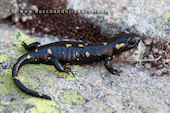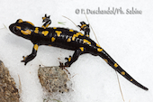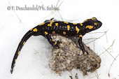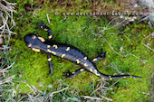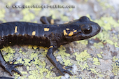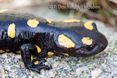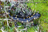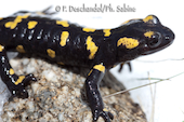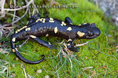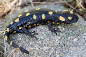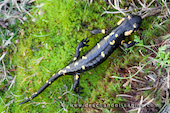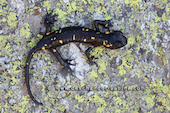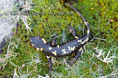 Salamandre tachetée (Salamandra salamandra almanzoris), lagune de Peñalara, Espagne.