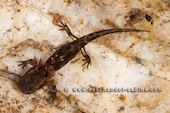 Salamandre tachetée (Salamandra salamandra almanzoris), larve, Sierra de Gredos, Espagne.