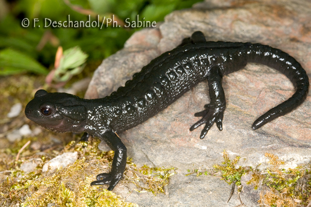 : Salamandre noire (Salamandra atra), Les Plans-sur-Bex, Suisse.