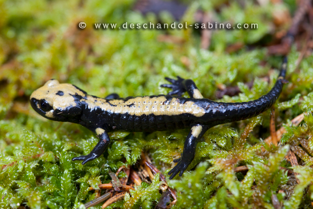 : Salamandre noire (Salamandra atra aurorae), juvénile, Asiago, Italie.