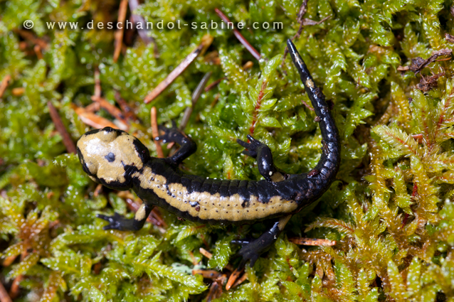 : Salamandre noire (Salamandra atra aurorae), juvénile, Asiago, Italie.