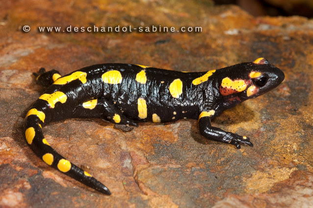 : Salamandre tachetée (Salamandra salamandra bejarae), Monfragüe, Espagne.