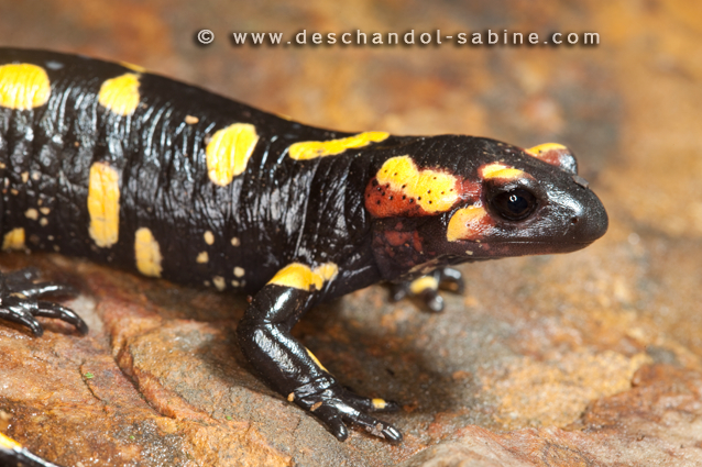 : Salamandre tachetée (Salamandra salamandra bejarae), Monfragüe, Espagne.
