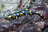 Salamandre tachetée (Salamandra salamandra bejarae), Monfragüe, Espagne.