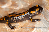 Salamandre tachetée (Salamandra salamandra bejarae), Peña de Francia, Espagne.