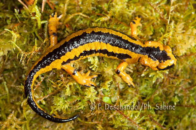 : Salamandre tachetée (Salamandra salamandra bernardezi), Puron, Espagne.