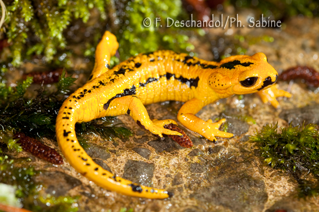: Salamandre tachetée (Salamandra salamandra bernardezi), Puron, Espagne.