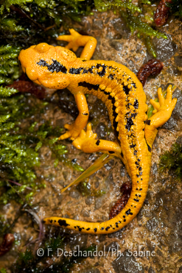 : Salamandre tachetée (Salamandra salamandra bernardezi), Puron, Espagne.