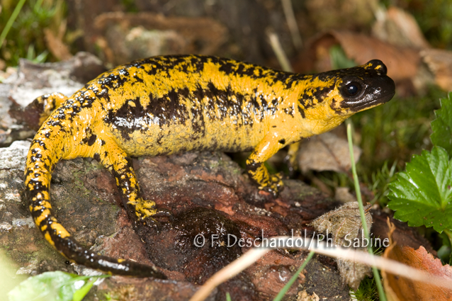 : Salamandre tachetée (Salamandra salamandra bernardezi), Puron, Espagne.